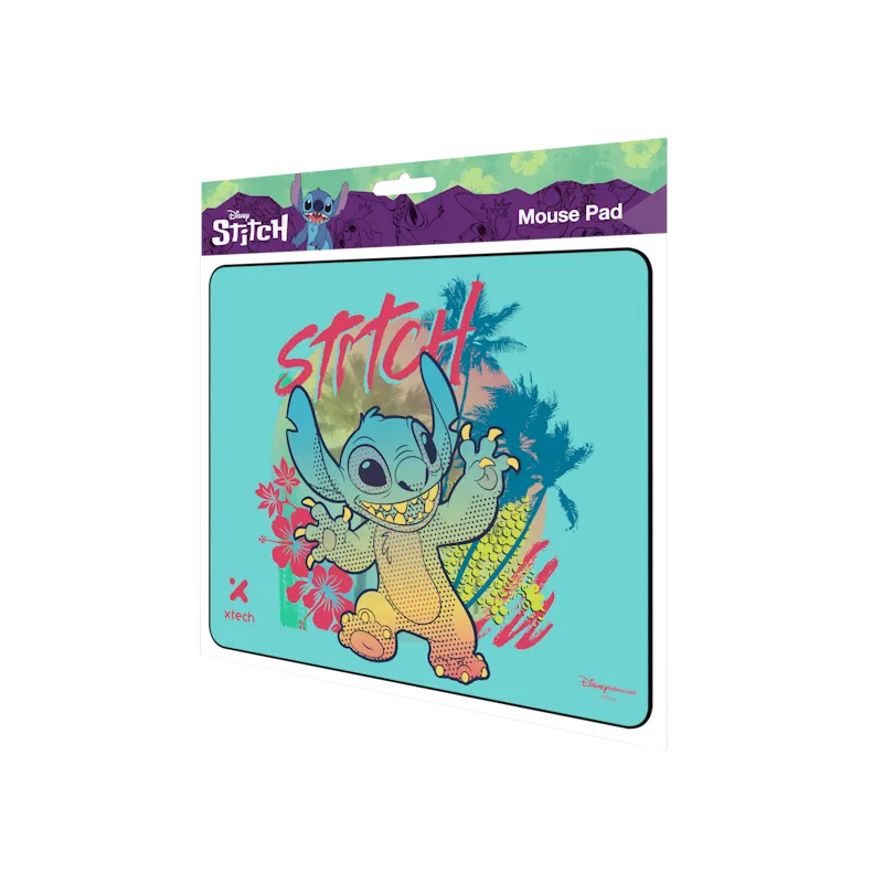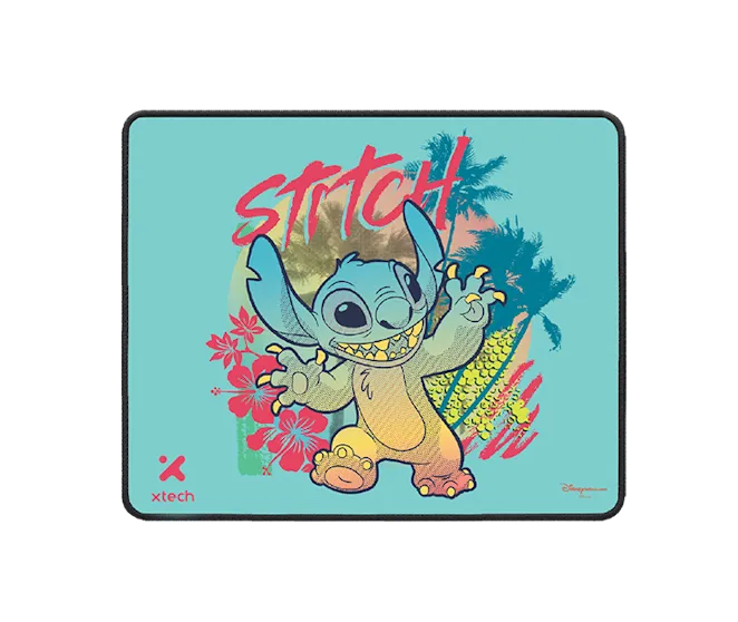 Alfombrilla de mouse con diseño de Stitch. Ofrece una superficie suave optimizada para todo tipo de sensores ópticos o láser, con una base de goma para evitar deslizamientos.