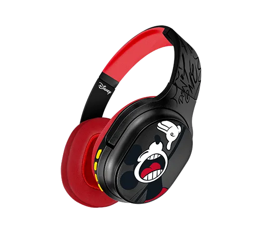 Auriculares inalámbricos con diseño temático de Mickey Mouse. Cuentan con conectividad Bluetooth y controles integrados para gestión de música y llamadas.