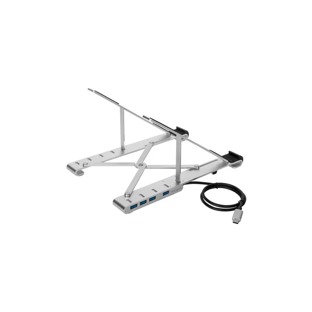 Su diseño plegable permite llevarla a cualquier lugar sin ocupar espacio innecesario en mochilas o escritorios, convirtiéndola en la herramienta ideal para estudiantes, profesionales y usuarios en movimiento. Lo más destacado es su hub USB integrado de 4 puertos, que permite ampliar rápidamente la conectividad de tu notebook, facilitando el uso de periféricos como mouse, teclado, memorias USB o discos externos.