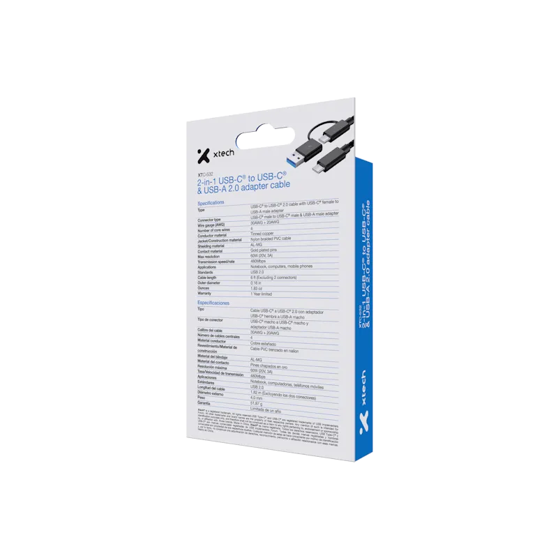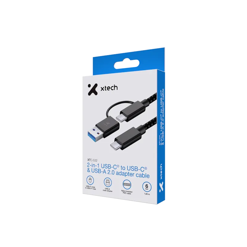 Cable adaptador 2 en 1 USB-C a USB-C con dongle USB-A Xtech XTC-532