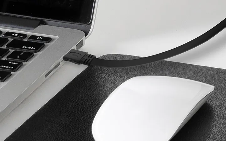 • Reducción de Enredos: Su forma plana evita que el cable se tuerza o se enrede, manteniendo un entorno de cables organizado y estético.