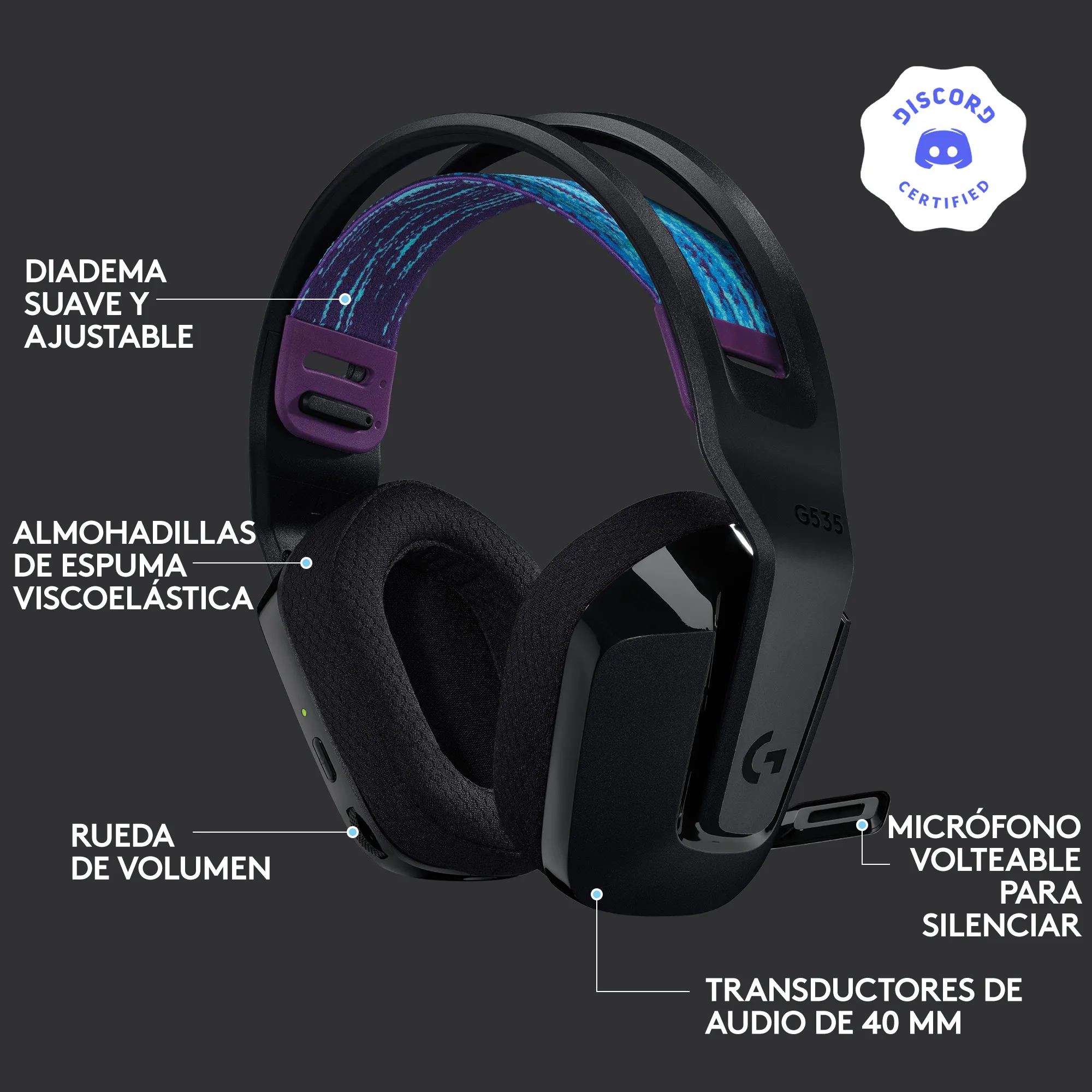 - Ligeros y cómodos: Con un peso de solo 236 g y una diadema con suspensión, el modelo G535 ofrece un tacto apenas perceptible y se ajusta para disfrutar una configuración personalizada.