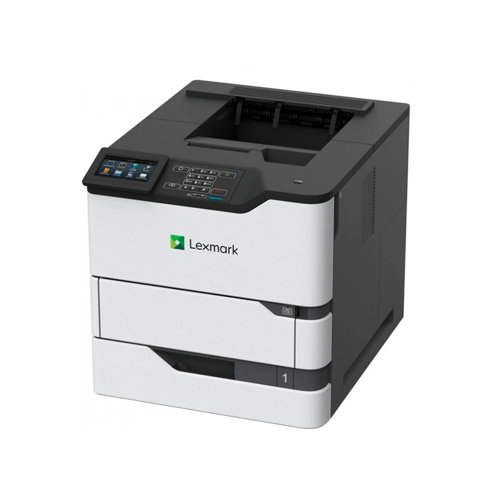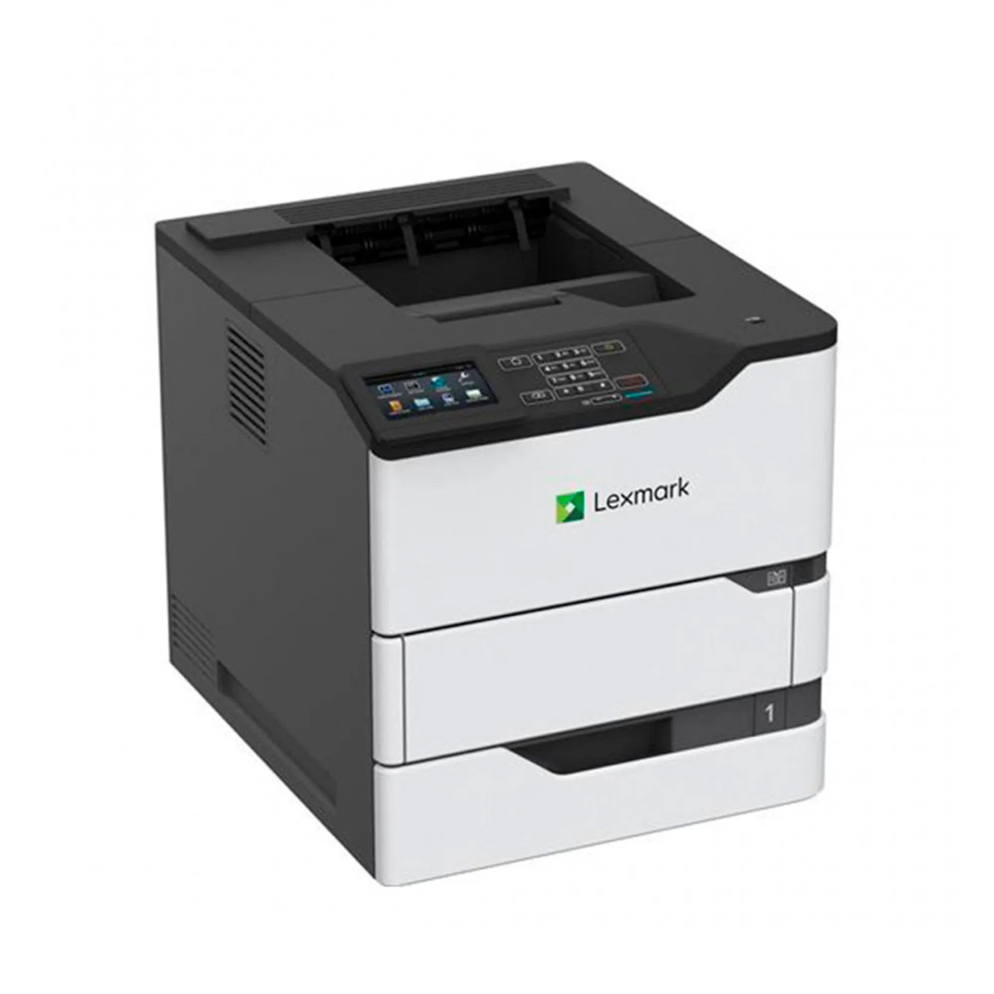 Impresora láser monocromática Lexmark MS826de. Velocidad de 66 ppm, dúplex automático y conectividad de red. Alto rendimiento y fiabilidad para grandes volúmenes de impresión.
