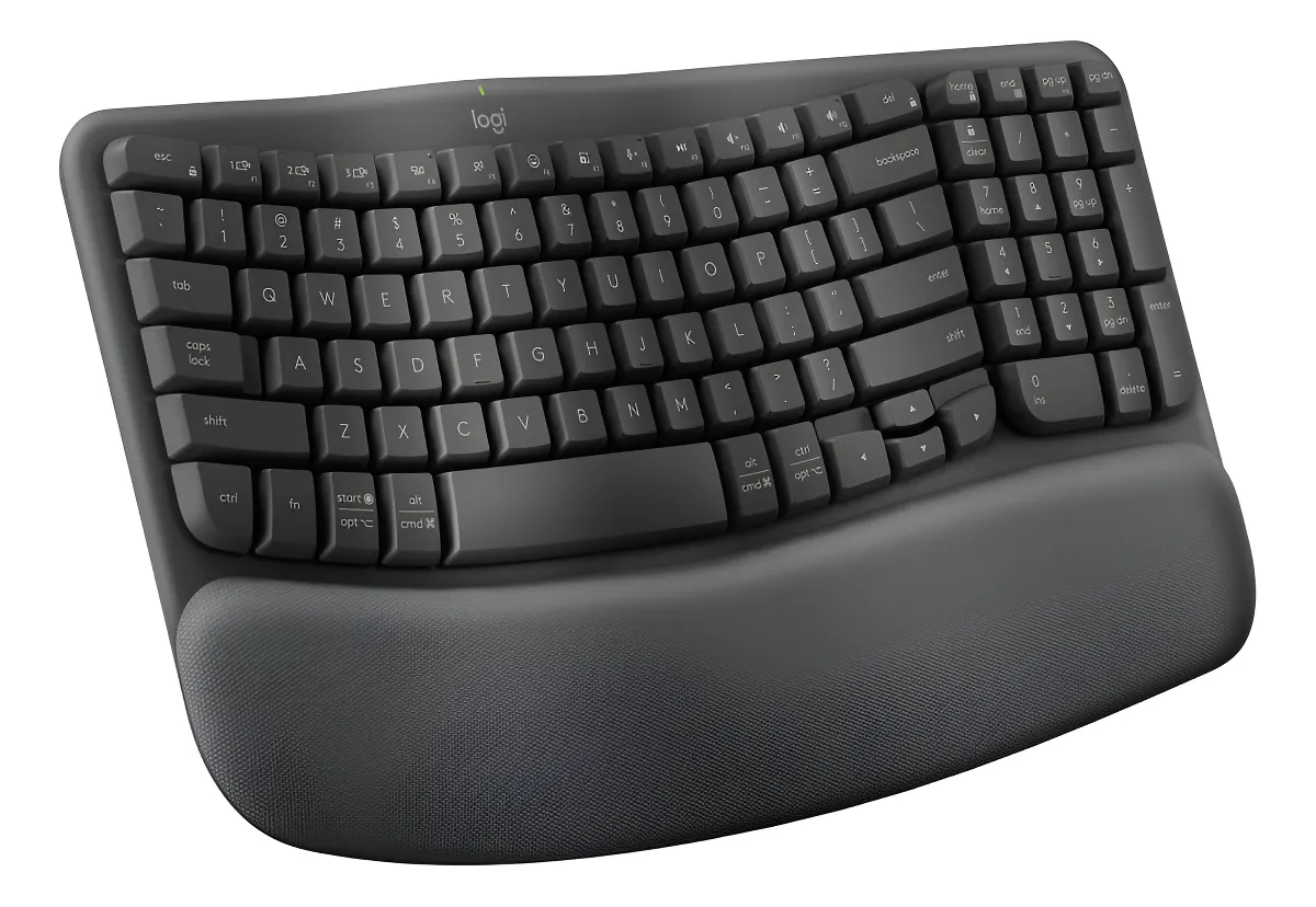 El Teclado Ergo Wave de Logitech es un teclado ergonómico inalámbrico con diseño curvado y reposamanos acolchado. Conectividad dual Logi Bolt/Bluetooth y distribución en español. Comodidad y soporte avanzados.