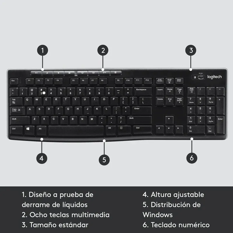 El Logitech K270 en negro es un teclado inalámbrico diseñado para brindar comodidad y movilidad en el escritorio. Su conexión de 2.4 GHz mediante receptor USB asegura una comunicación estable y sin interferencias. Cuenta con teclas resistentes a salpicaduras, lo que aumenta su durabilidad en entornos de trabajo exigentes. Su diseño compacto y teclado numérico integrado facilitan la escritura eficiente y cómoda. Además, su batería de larga duración minimiza la necesidad de recambios frecuentes. Es compatible con Windows y otros sistemas, ideal para usuarios que buscan libertad de movimiento y productividad.
