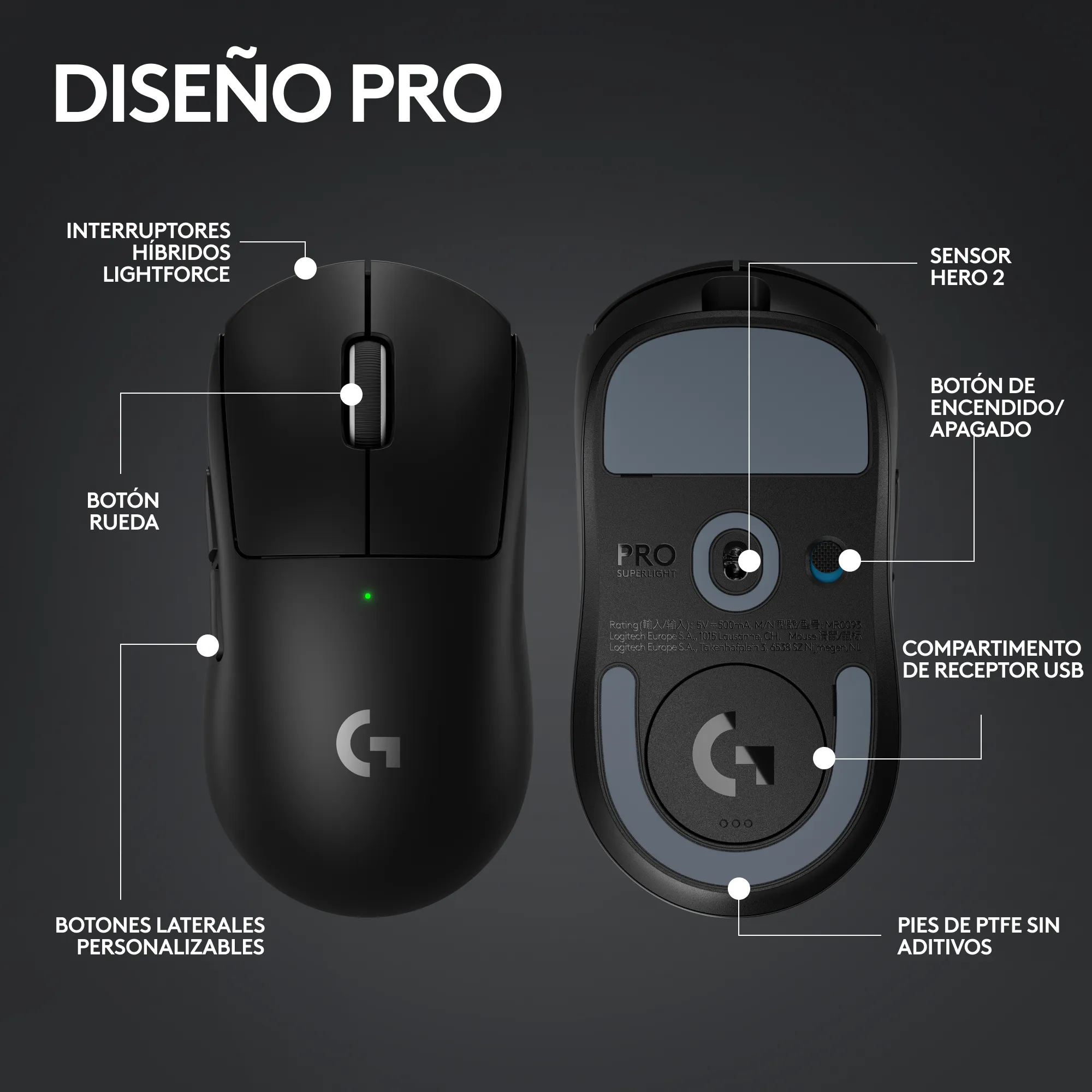 Mouse inalámbrico gaming Logitech G Pro X Superlight 2 en color negro. Tecnología LIGHTSPEED, switches Lightforce híbridos y sensor HERO 2 optimizado. El mouse de eSports definitivo.