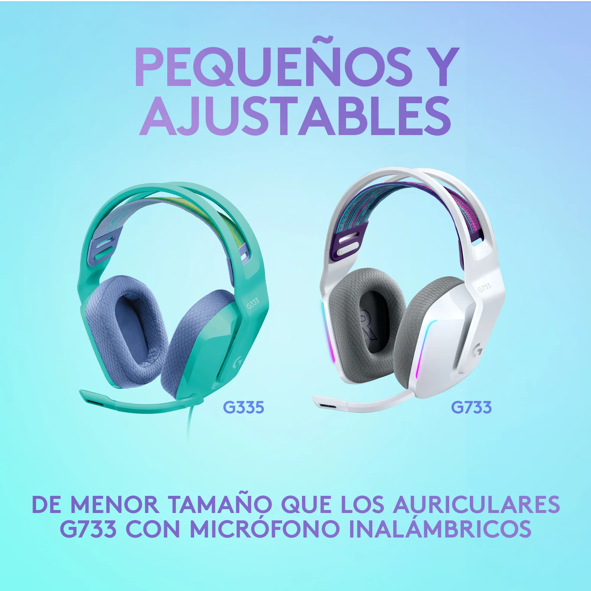 - Los coloridos audífonos G335 son una versión más pequeña y ligera de los galardonados audífonos inalámbricos para juegos G733.