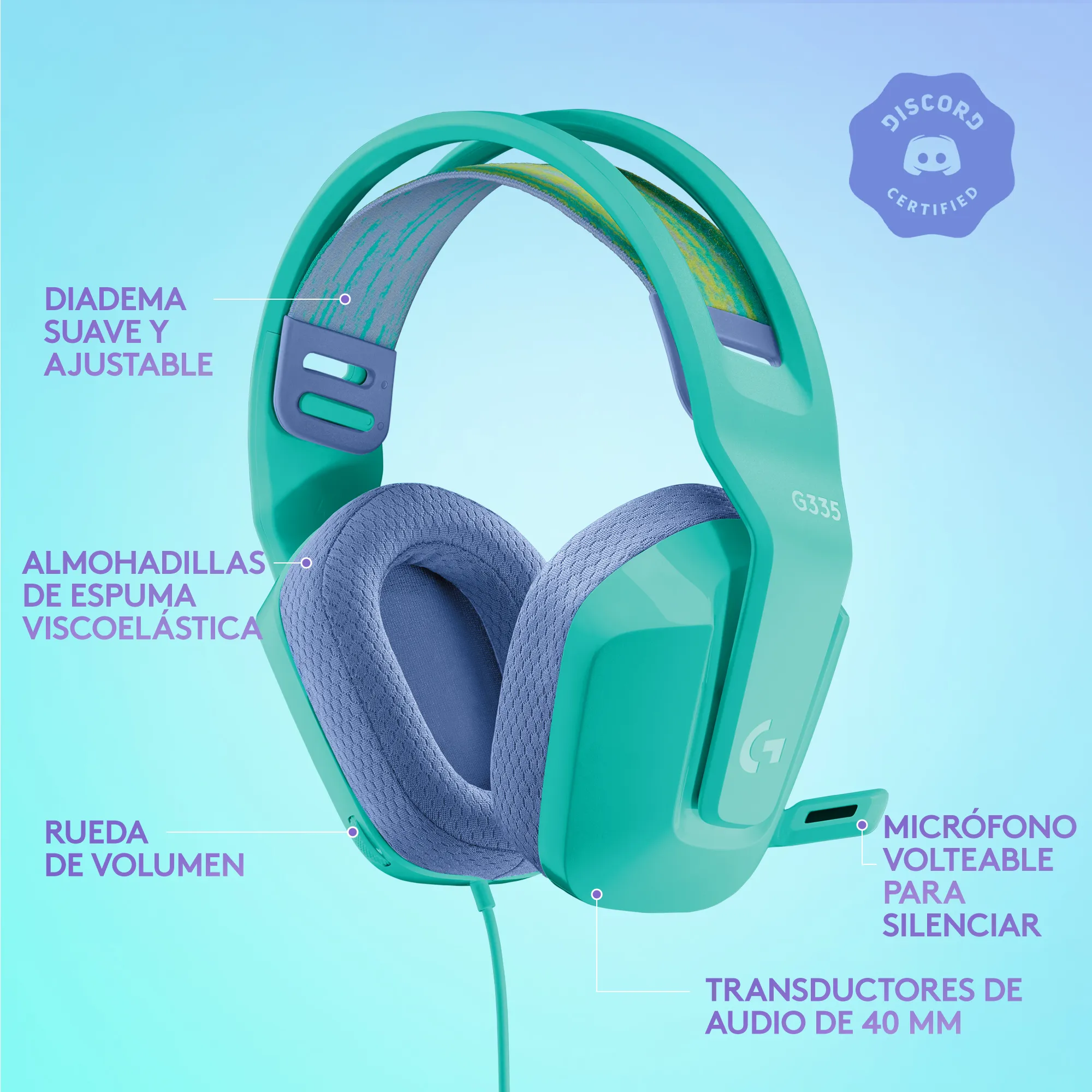 - Los G335 están incluso certificados por Discord y está disponible en una gama de colores para adaptarse a tu estilo individual.