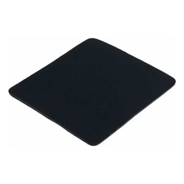 Alfombrilla de mouse estándar de color negro. Superficie de tela optimizada para un seguimiento preciso del cursor y base de goma antideslizante para estabilidad general.