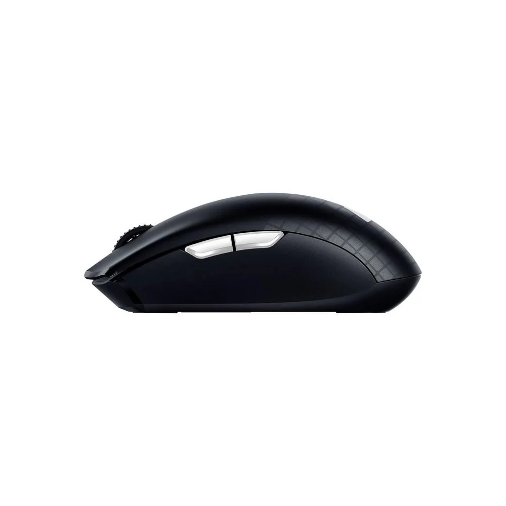 Su diseño ergonómico derecho incluye reposamanos lateral incorporado y 11 botones programables (10 + 1), que se pueden personalizar para macros, atajos o funciones multimedia mediante Razer Synapse. La iluminación Razer Chroma RGB, distribuida en 11 zonas independientes, permite efectos dinámicos y sincronización con juegos compatibles, generando estética visual atractiva bajo efectos de luz sincronizados
