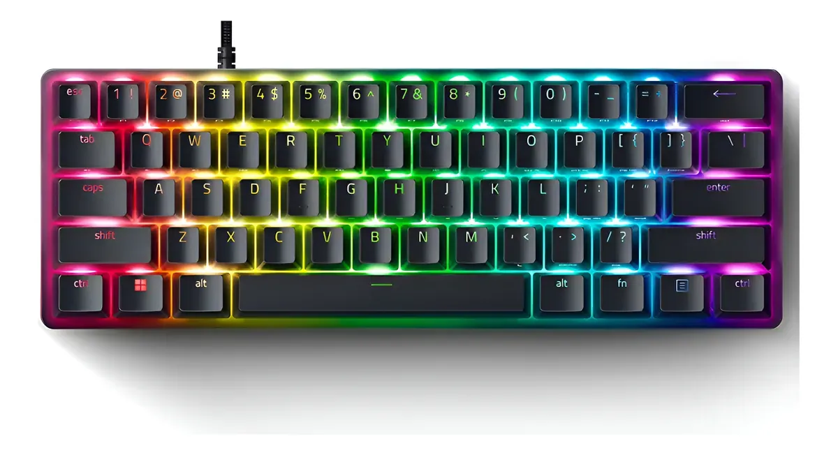 Teclado gaming ultracompacto (60%) Razer Huntsman Mini en español con switches ópticos Razer Purple (clicky). Cable USB-C extraíble e iluminación Razer Chroma RGB.