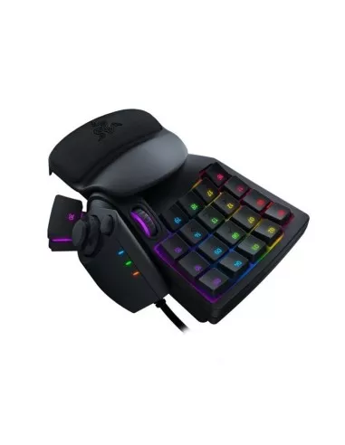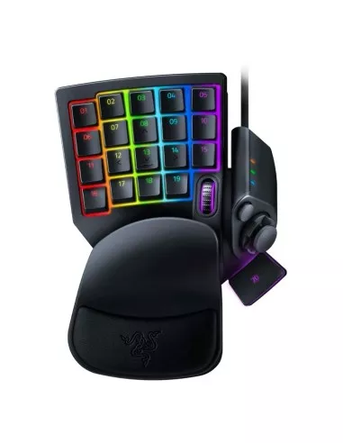 El Razer Tartarus Pro en negro es un teclado gaming avanzado que ofrece teclas programables con función analógica para mayor control en juegos. Cuenta con retroiluminación RGB personalizable y diseño ergonómico con reposamuñecas. Su construcción robusta y software compatible permiten una configuración detallada, ideal para gamers que buscan precisión y funcionalidad superior.