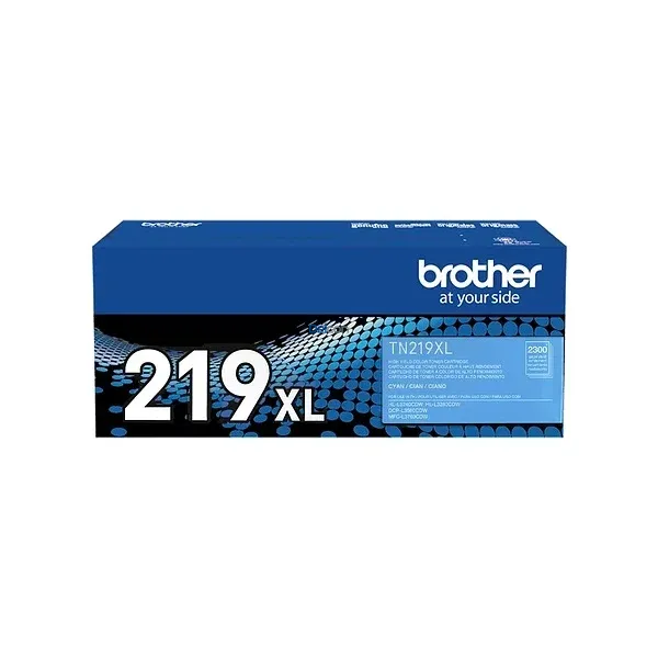Cartucho de tóner original Brother TN-219XLC en color cian. Versión de alto rendimiento (2300 páginas) para impresoras láser a color Brother compatibles.